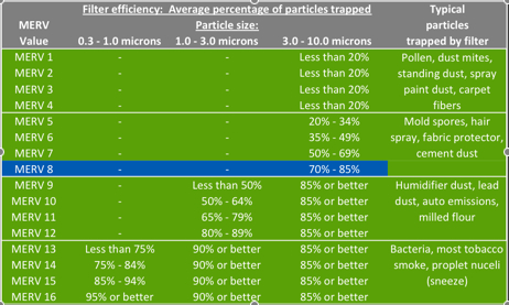 Click the table above for an understanding of MERV ratings and what they mean to you.
